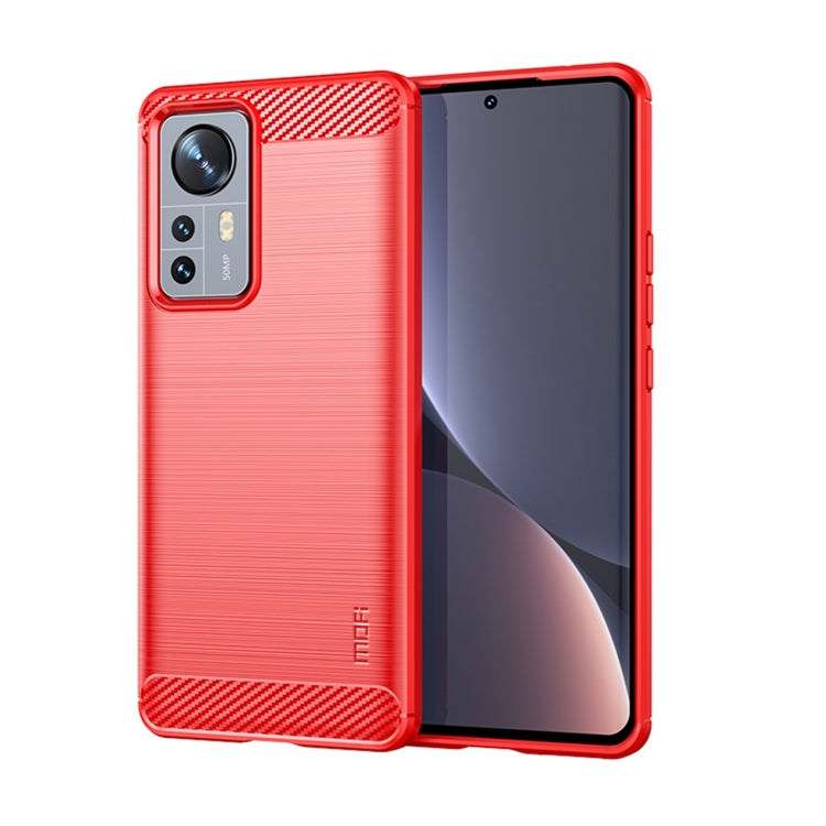For Xiaomi 12 Pro MOFI Gentleness Brushed Carbon Fiber Soft TPU Case(Red)