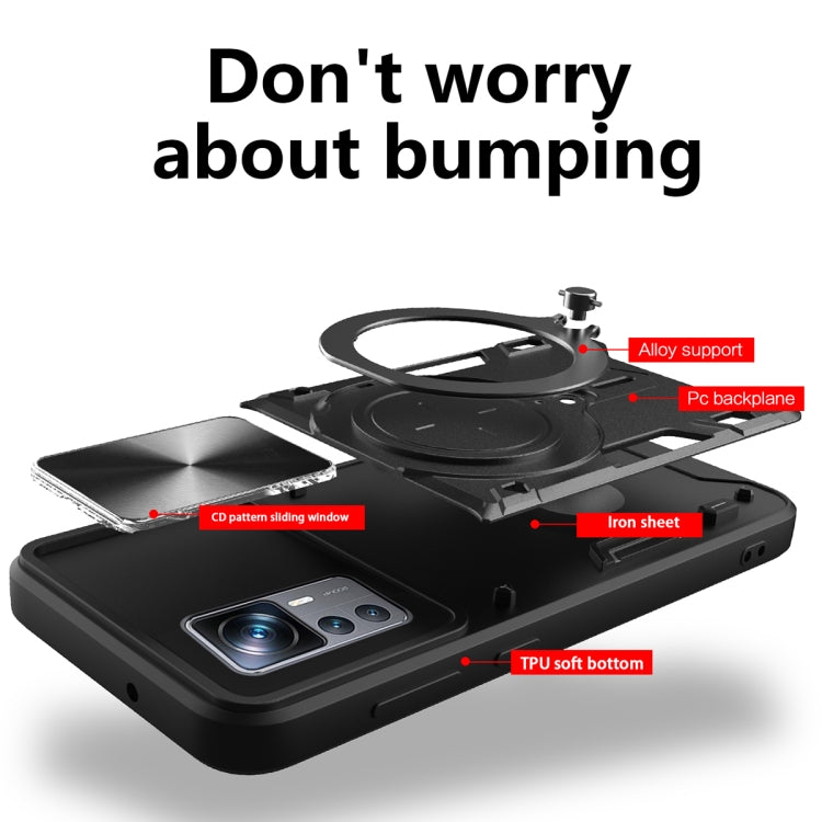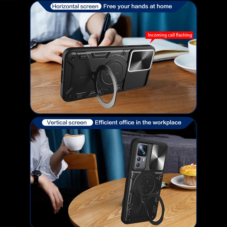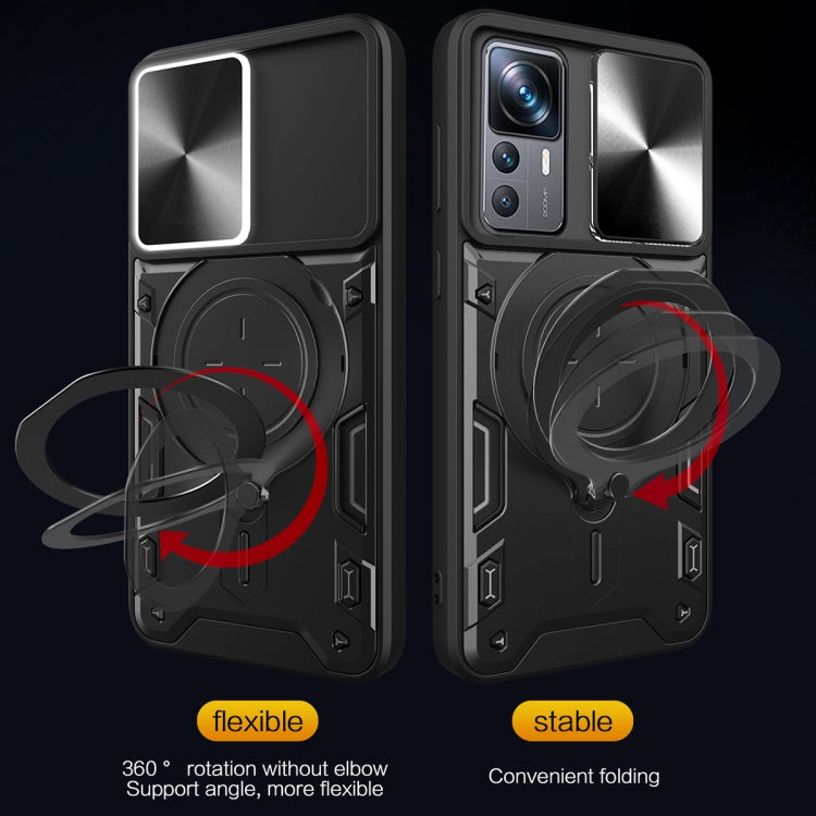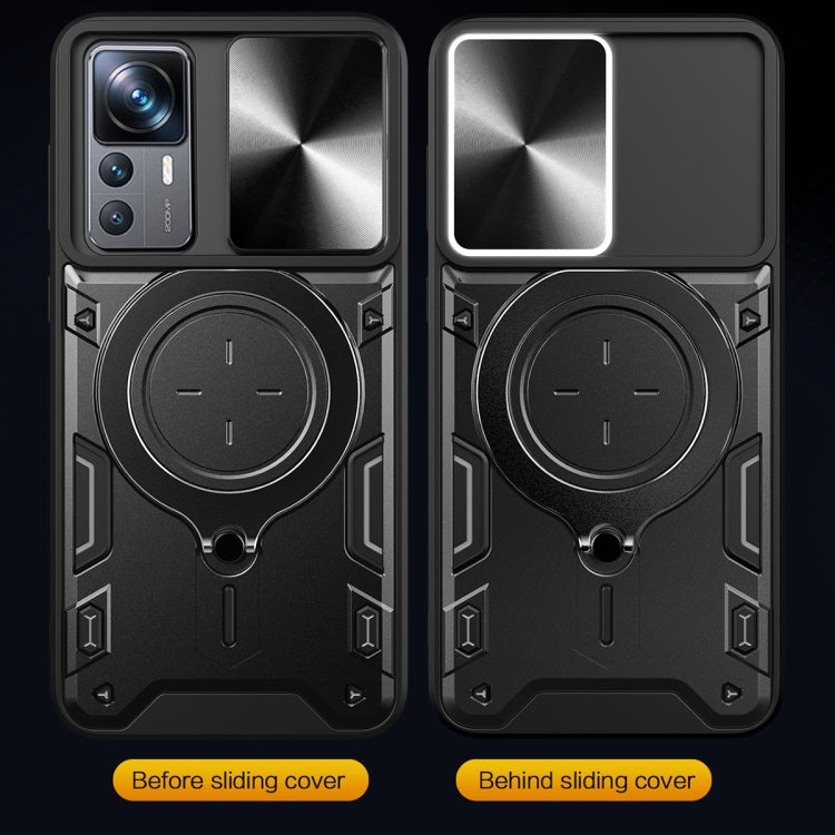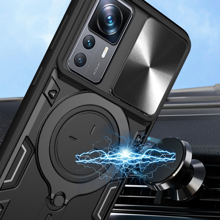 For Xiaomi 12T / 12T Pro CD Texture Sliding Camshield Magnetic Holder Phone Case(Blue)