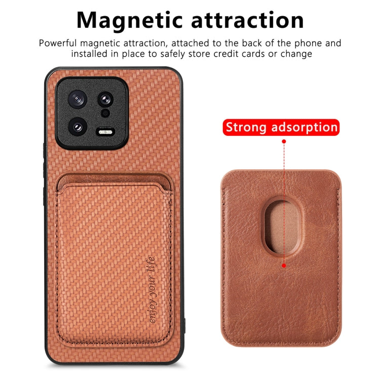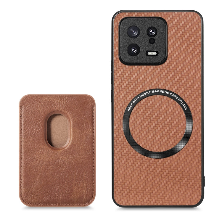 For Xiaomi 13 Carbon Fiber Leather Card Magnetic Phone Case(Brown)