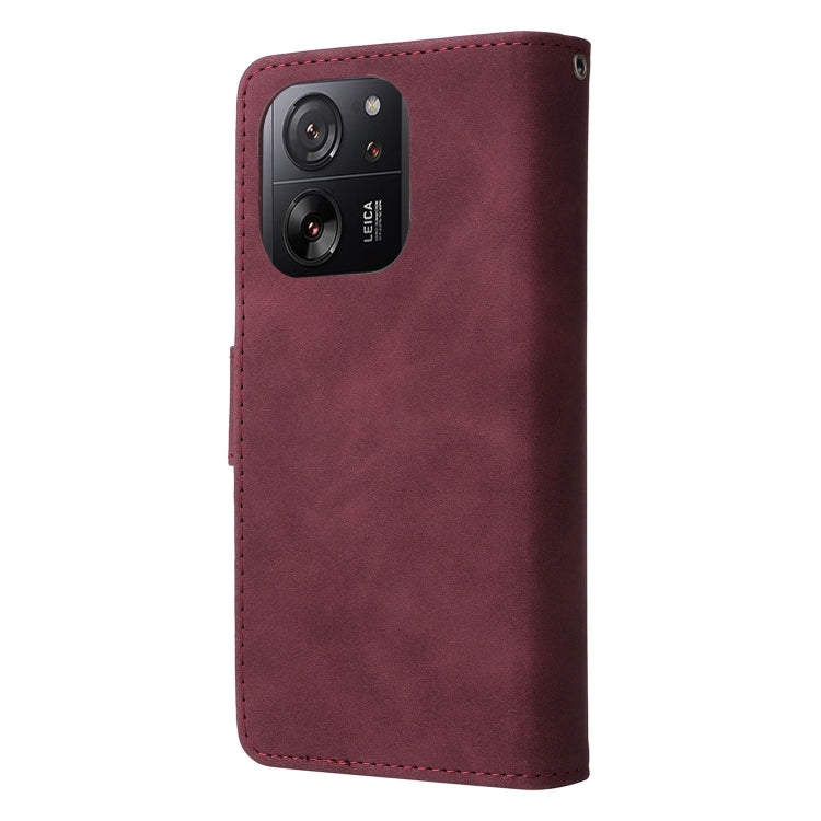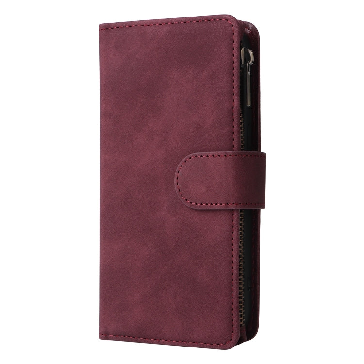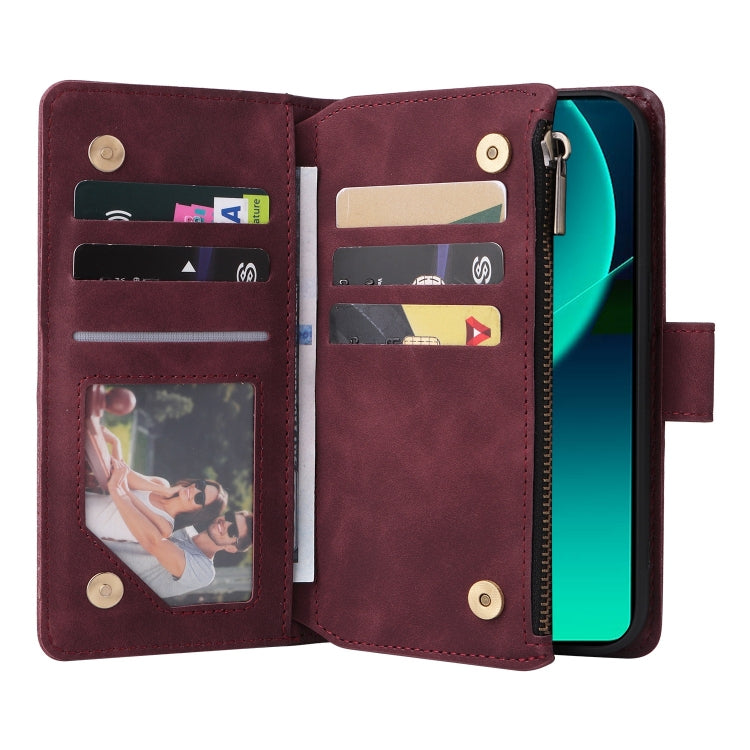 For Xiaomi 13T / 13T Pro Multifunctional Frosted Zipper Wallet Leather Phone Case(Wine Red)