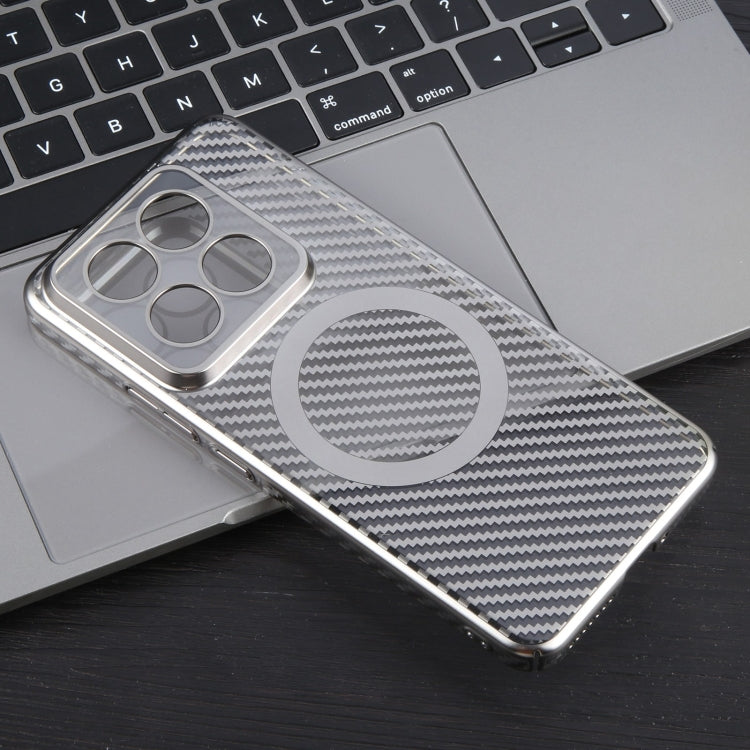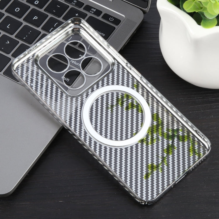 For Xiaomi 14 6D Plated Carbon Fiber Clear Magsafe PC Phone Case(Titanium Grey)