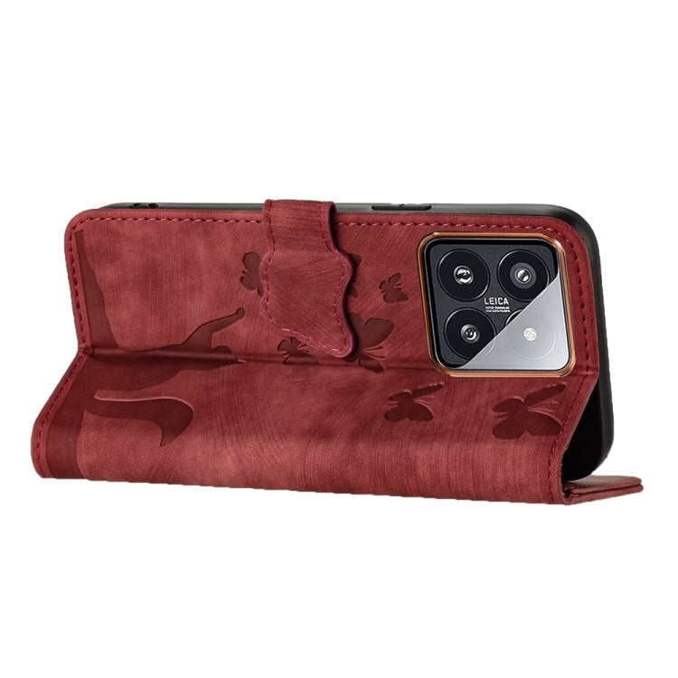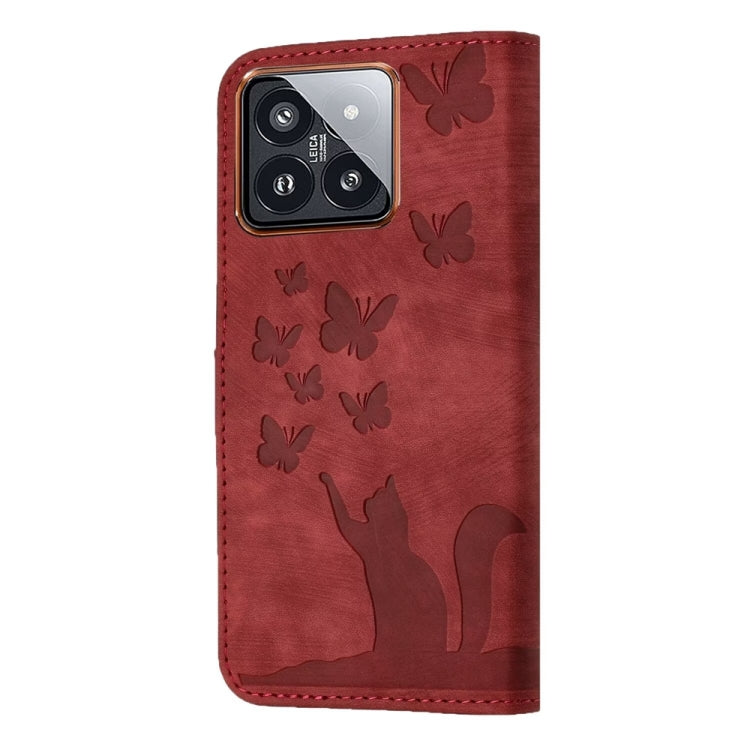 For Xiaomi 14 Butterfly Cat Embossing Flip Leather Phone Case(Red)