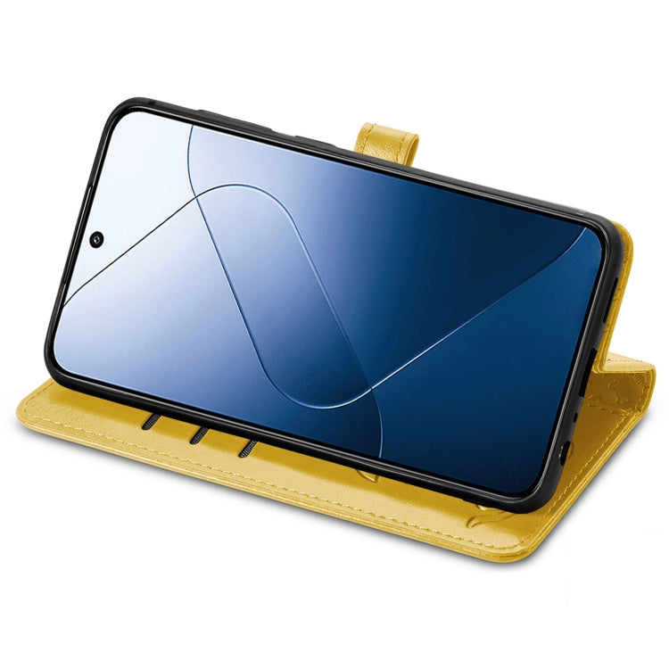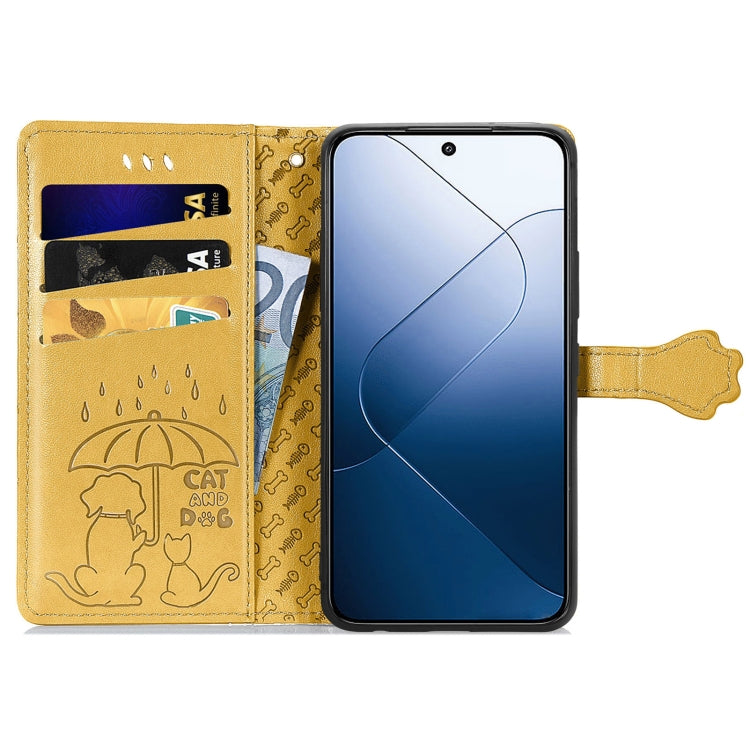 For Xiaomi 14 Cat and Dog Embossed Leather Phone Case(Yellow)