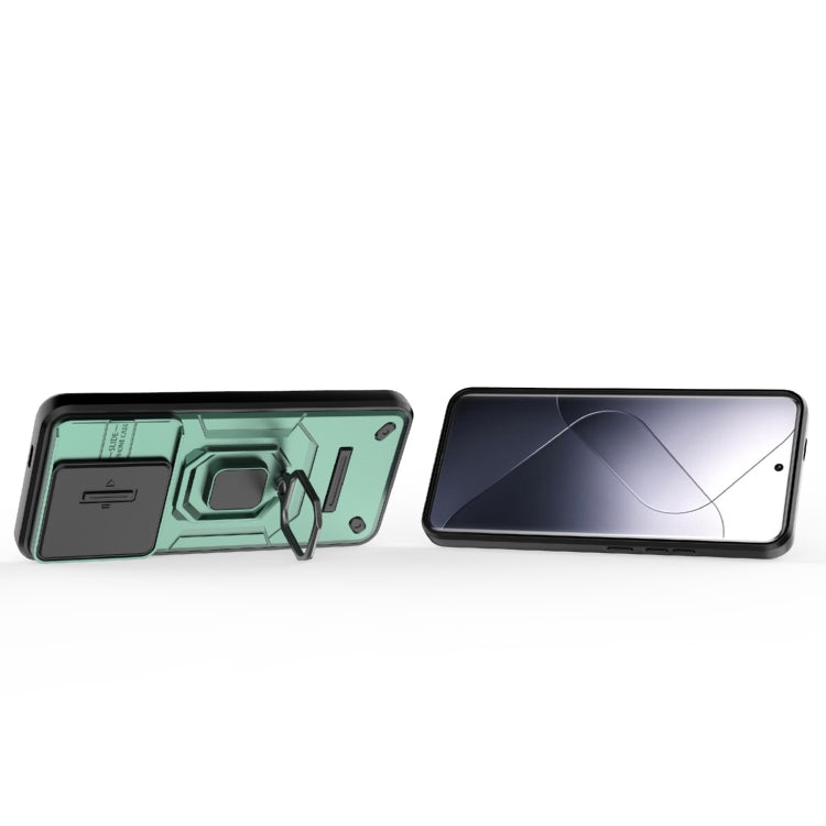 For Xiaomi 14 Pro 5G Sliding Camshield TPU + PC Shockproof Phone Case with Holder(Green)