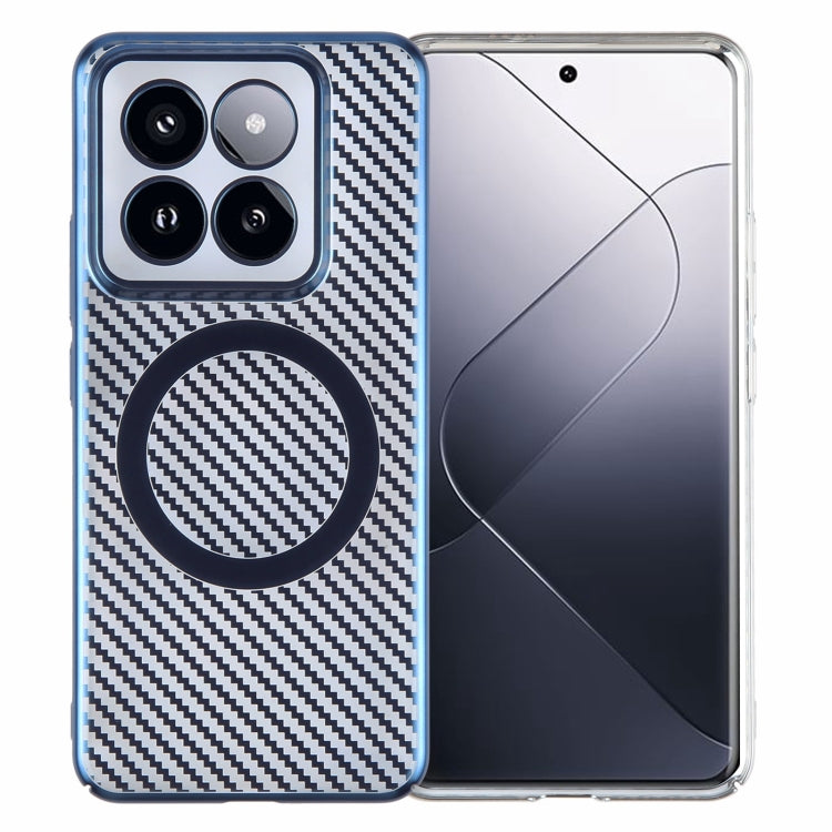 For Xiaomi 14 Pro 6D Plated Carbon Fiber Clear Magsafe PC Phone Case(Dream Blue)