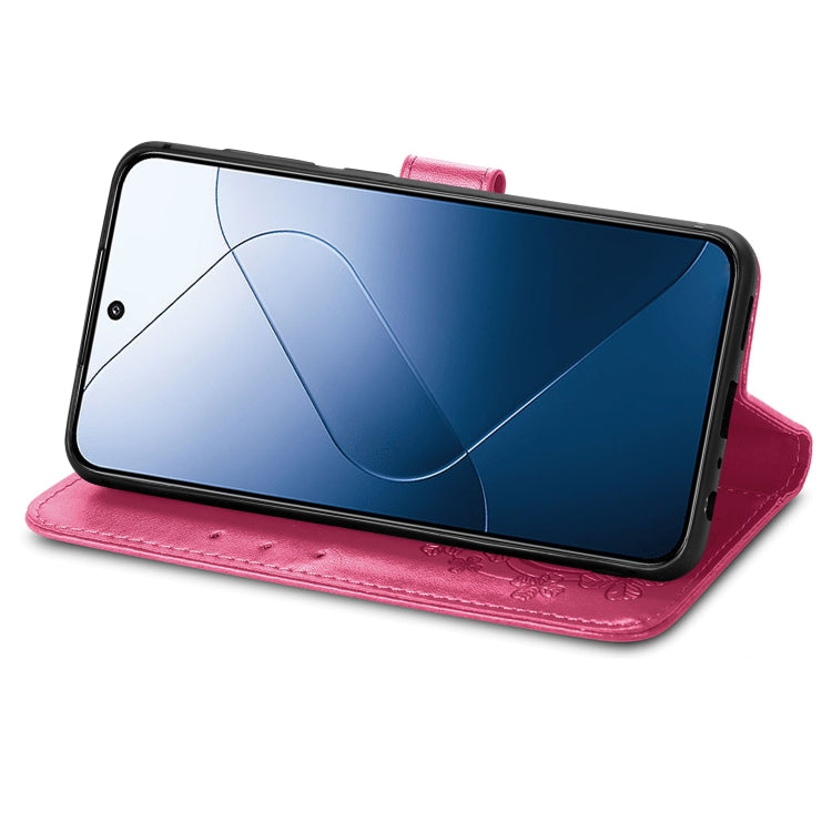 For Xiaomi 14 Pro Four-leaf Clasp Embossed Leather Phone Case(Magenta)