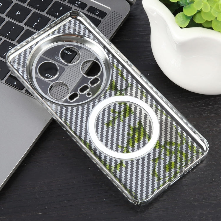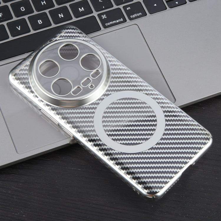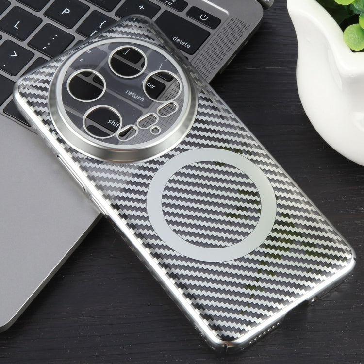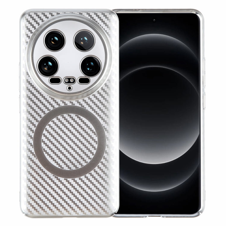 For Xiaomi 14 Ultra 6D Plated Carbon Fiber Clear Magsafe PC Phone Case(Starlight Silver)