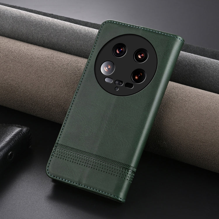 For Xiaomi 14 Ultra AZNS Magnetic Calf Texture Flip Leather Phone Case(Dark Green)