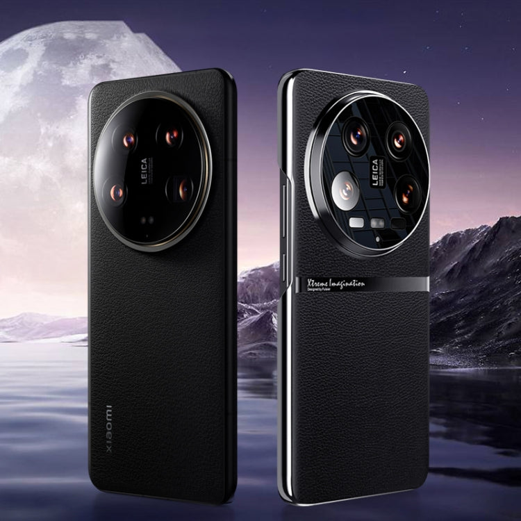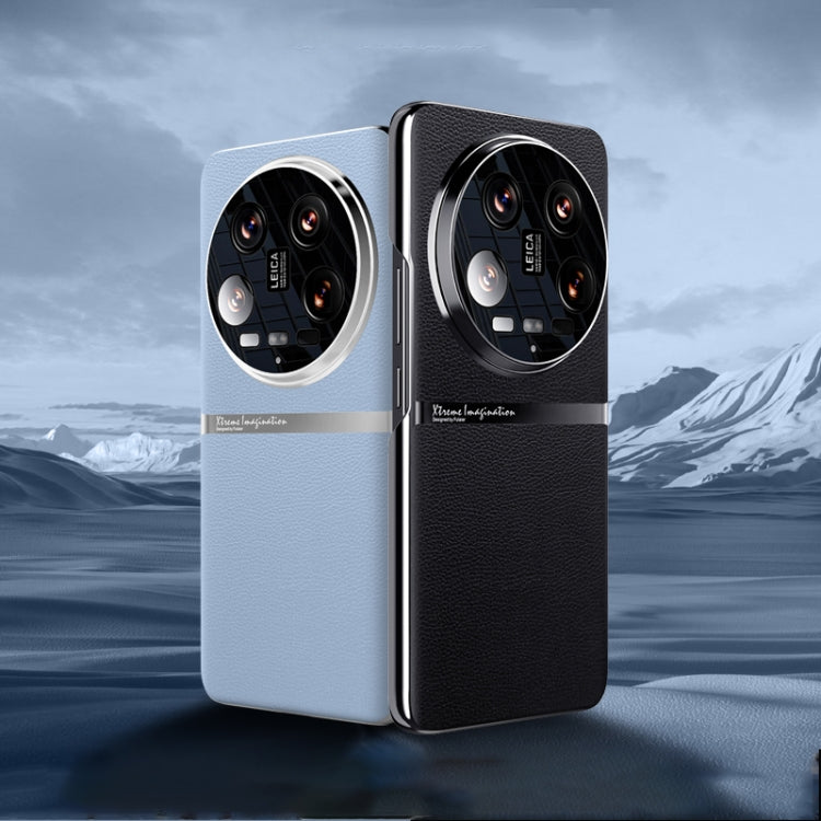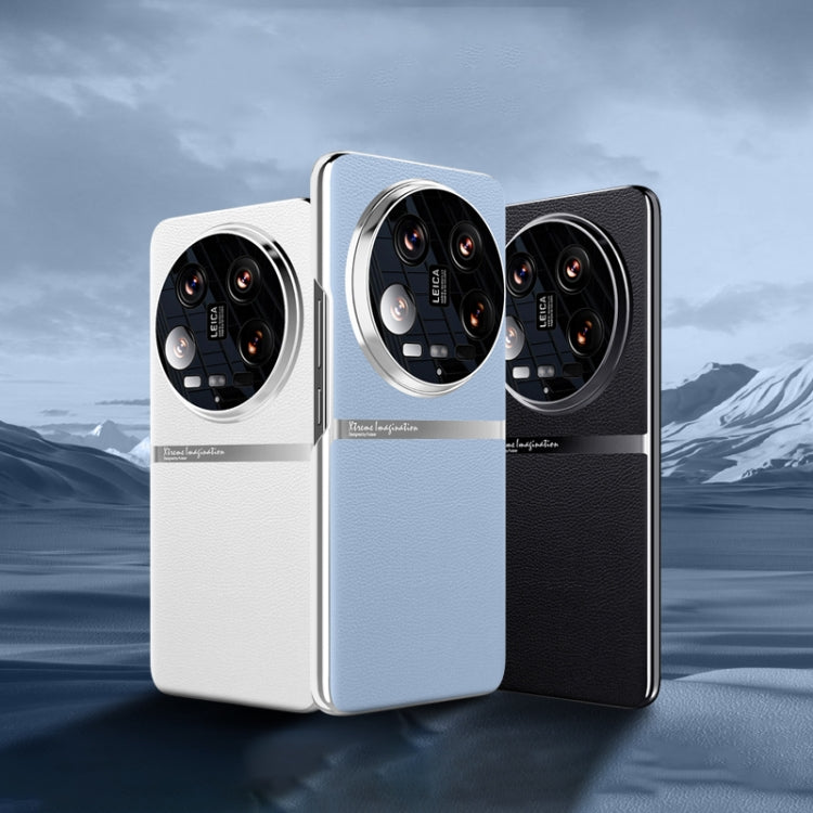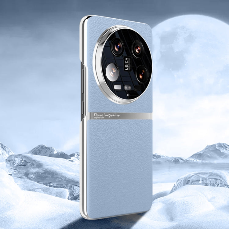 For Xiaomi 14 Ultra Electroplating Plain-leather All-inclusive Shockproof Phone Case(Bule)
