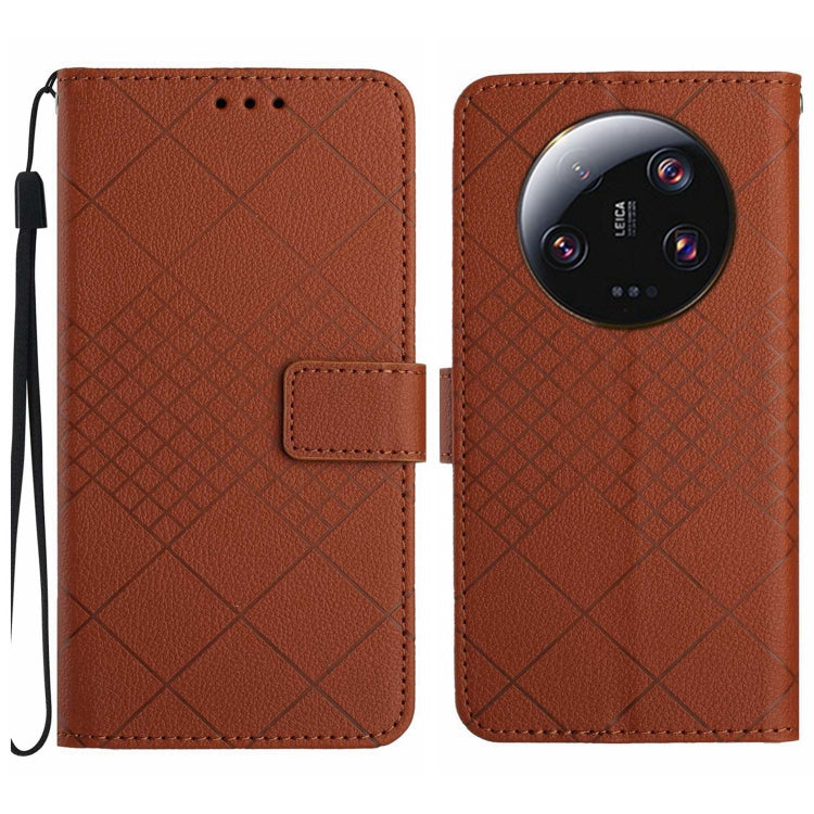 For Xiaomi 14 Ultra Rhombic Grid Texture Leather Phone Case(Brown)