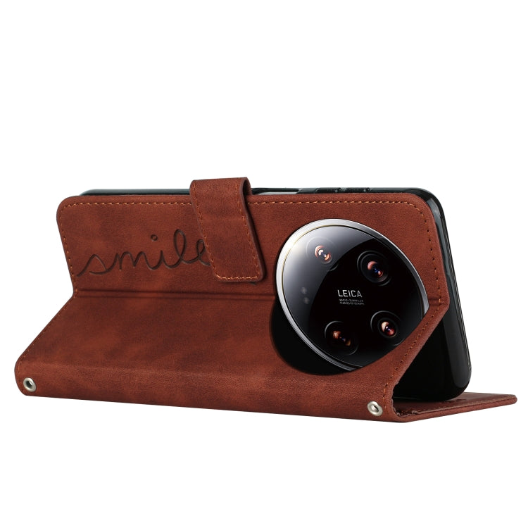 For Xiaomi 14 Ultra Skin Feel Heart Embossed Leather Phone Case with Long Lanyard(Brown)