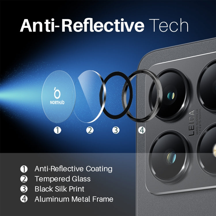 For Xiaomi 14T 5G NORTHJO Camera Lens Protector CD Metal Ring Tempered Glass Film(Black)