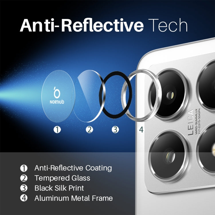 For Xiaomi 14T 5G NORTHJO Camera Lens Protector CD Metal Ring Tempered Glass Film(Silver)