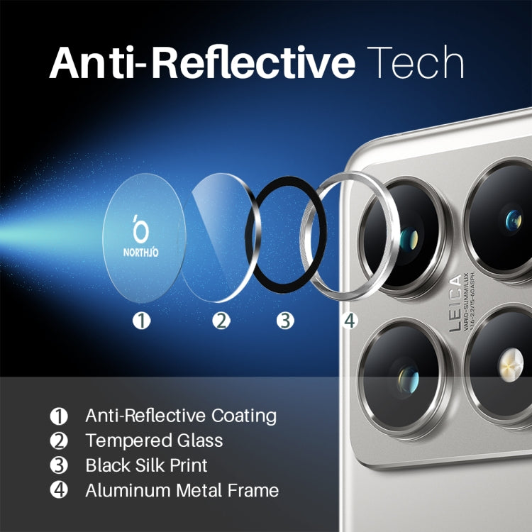 For Xiaomi 14T Pro 5G NORTHJO Camera Lens Protector CD Metal Ring Tempered Glass Film(Silver)
