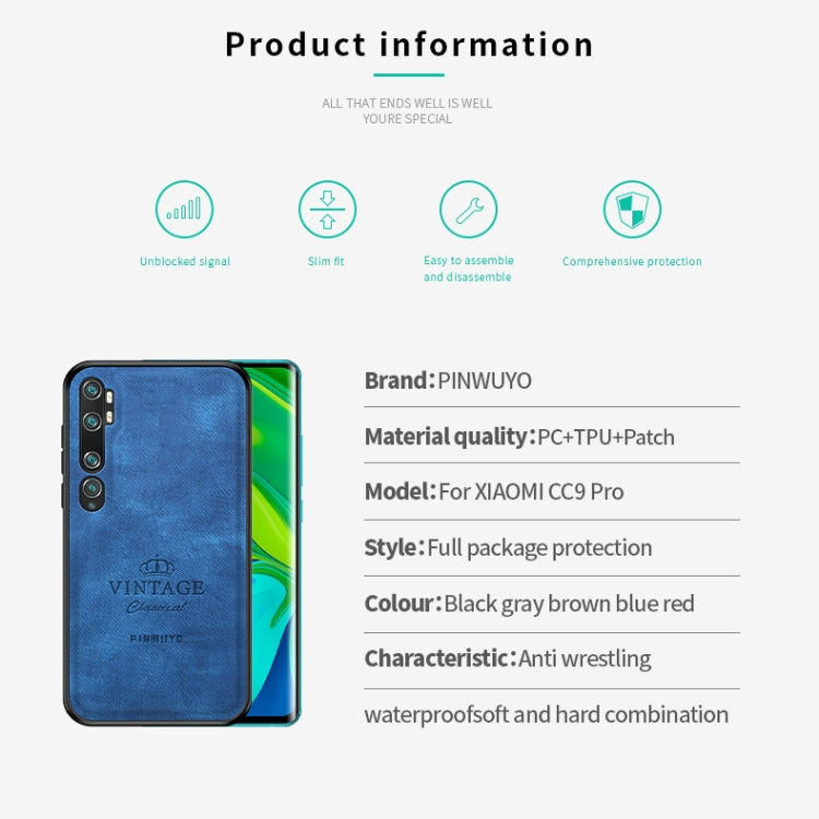 For Xiaomi CC9 Pro / Note10 PINWUYO Zun Series PC + TPU + Skin Waterproof And Anti-fall All-inclusive Protective Shell(Gray)