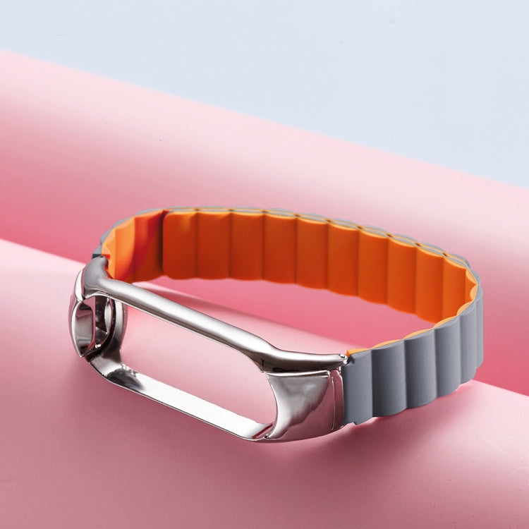 For Xiaomi Mi Band 4 / 3 Silicone Magnetic Watch Band(Grey Orange)