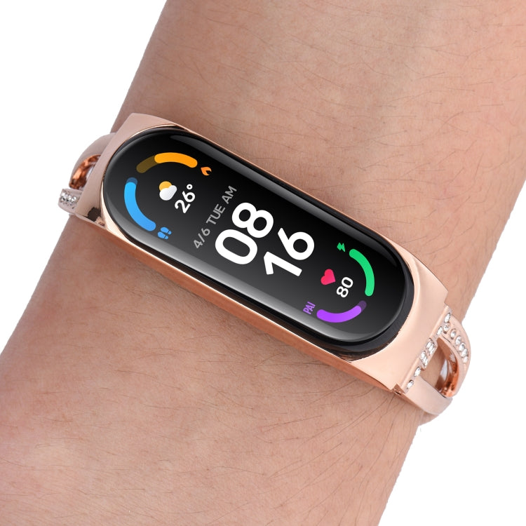 For Xiaomi Mi Band 4 / 3 X-shaped Diamond Alloy Watch Band(Rose Gold)