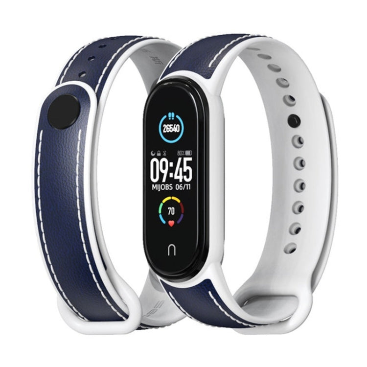 For Xiaomi Mi Band 5/6/7 MIJOBS TPU + Leather Watch Band(Blue+White)