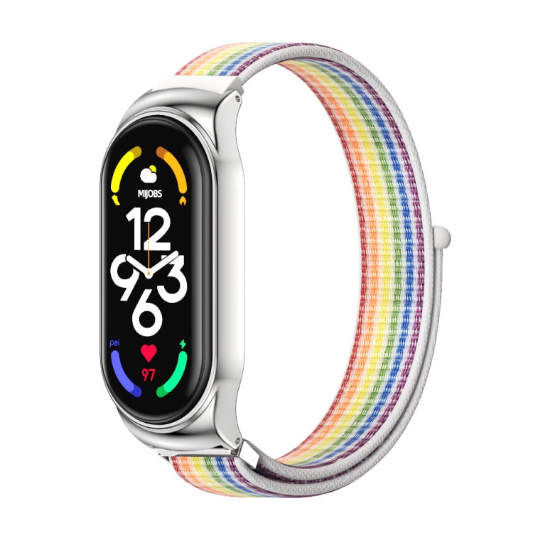 For Xiaomi Mi Band 7 / 7 NFC MIJOBS CS Stainless Steel Case Nylon Watch Band(Colorful Silver)