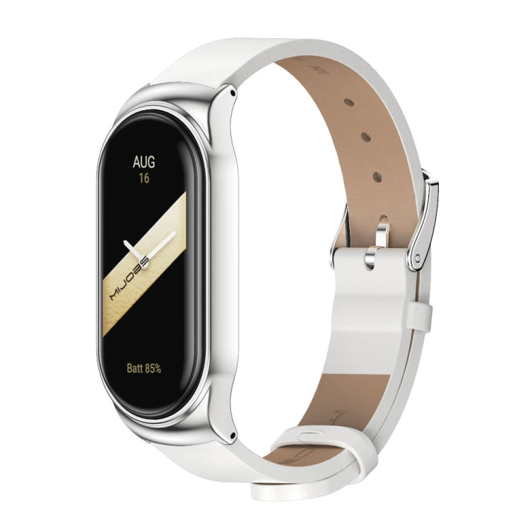 For Xiaomi Mi Band 8 Mijobs CS Case Microfiber PU Leather Watch Band(White Silver)