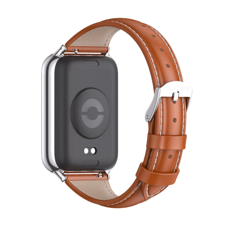 For Xiaomi Smart Band 9 Pro / 8 Pro Mijobs Genuine Leather Slim Watch Band(Orange Silver)
