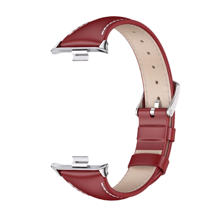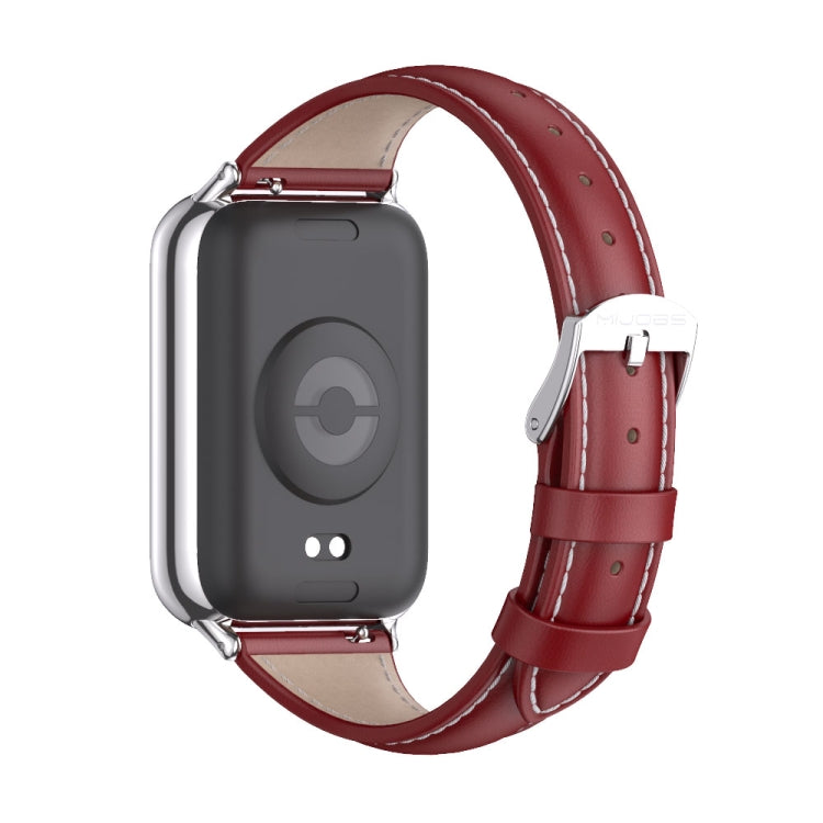 For Xiaomi Smart Band 9 Pro / 8 Pro Mijobs Genuine Leather Slim Watch Band(Red Silver)