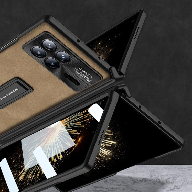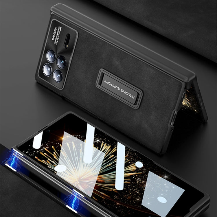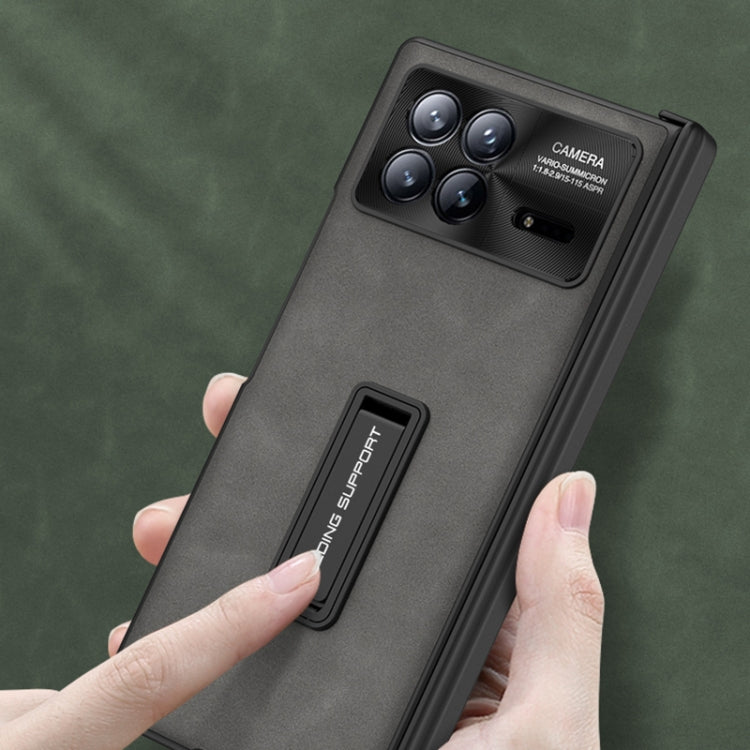 For Xiaomi Mix Fold 3 GKK Integrated Frosted Fold Hinge Leather Phone Case with Holder(Grey)