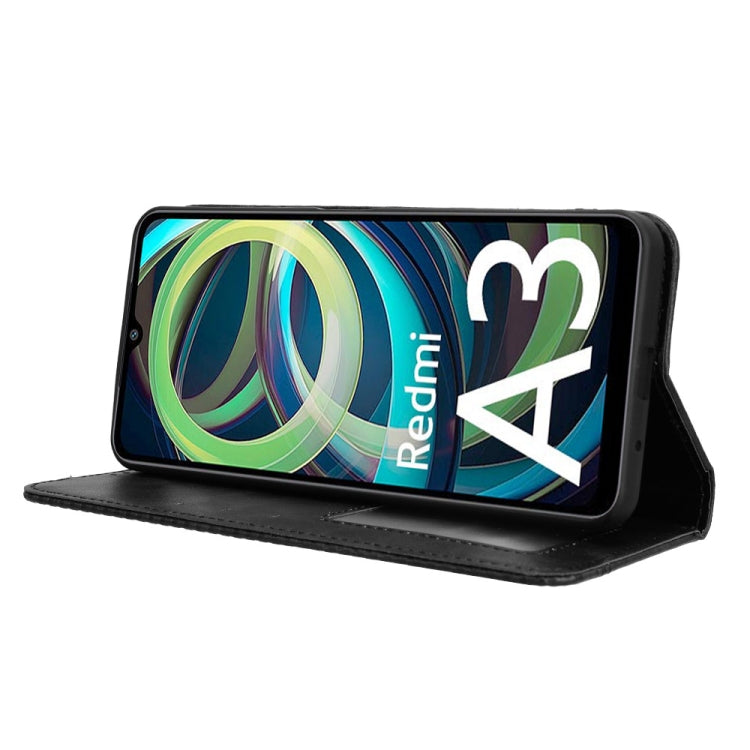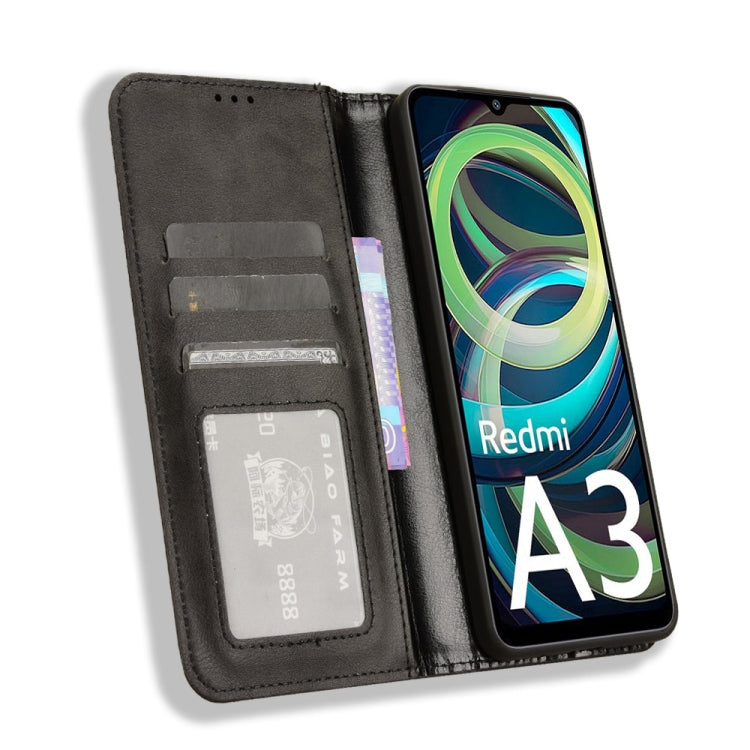For Xiaomi Poco C61 / Redmi A3 Magnetic Buckle Retro Texture Leather Phone Case(Black)