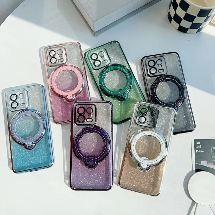 For Xiaomi Poco F5 Pro 5G Rotation MagSafe Holder Gradient Glitter TPU Phone Case(Pine Green)