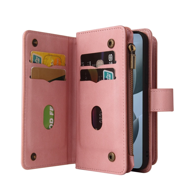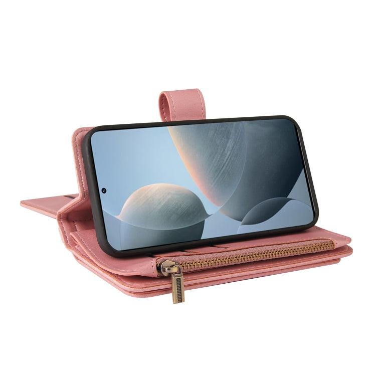 For Xiaomi Poco F6 Pro Skin Feel Multi Card Slots Zipper Wallet Leather Phone Case(Pink)