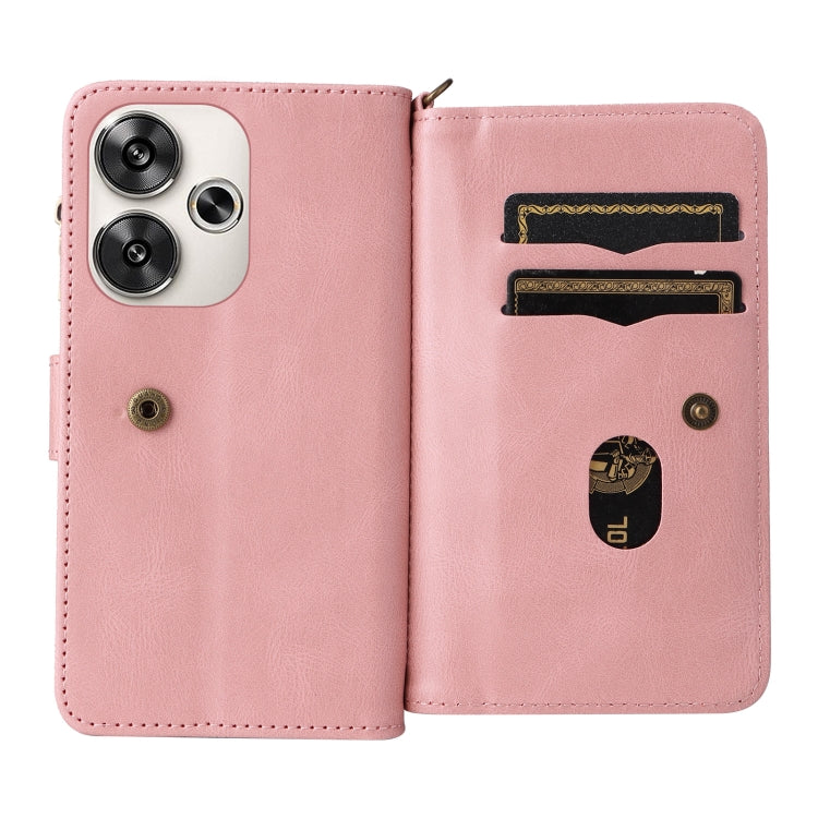 For Xiaomi Poco F6 Skin Feel Multi Card Slots Zipper Wallet Leather Phone Case(Pink)