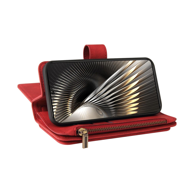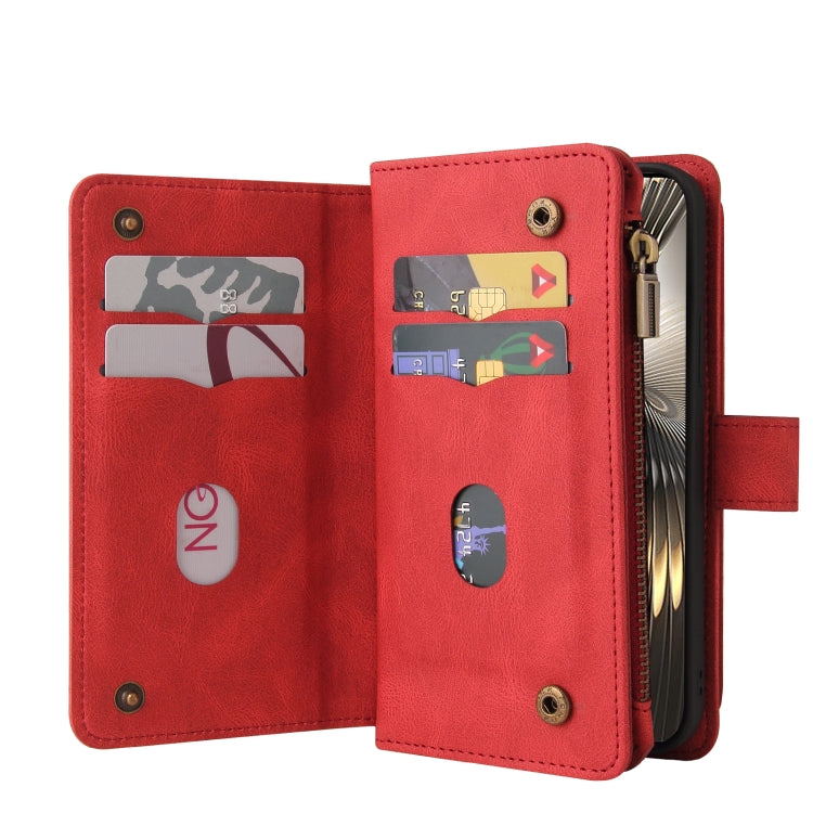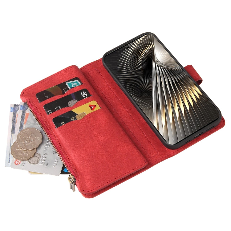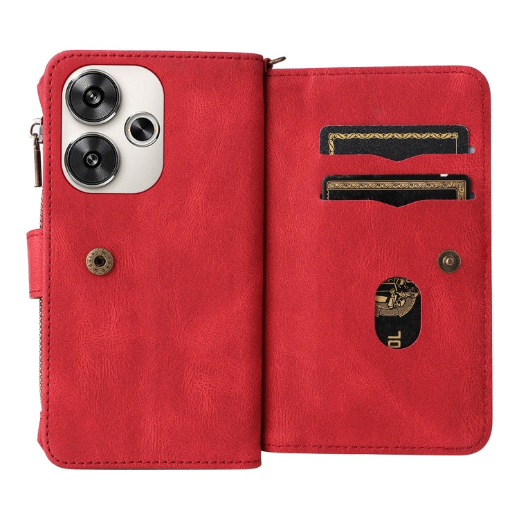 For Xiaomi Poco F6 Skin Feel Multi Card Slots Zipper Wallet Leather Phone Case(Red)