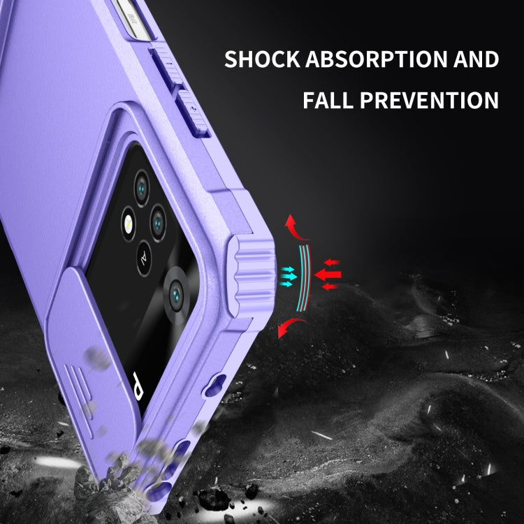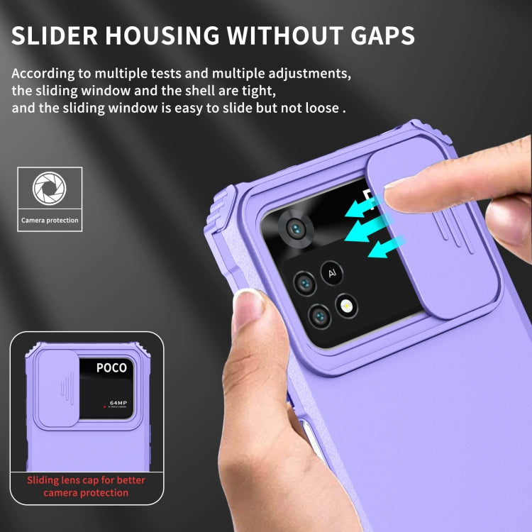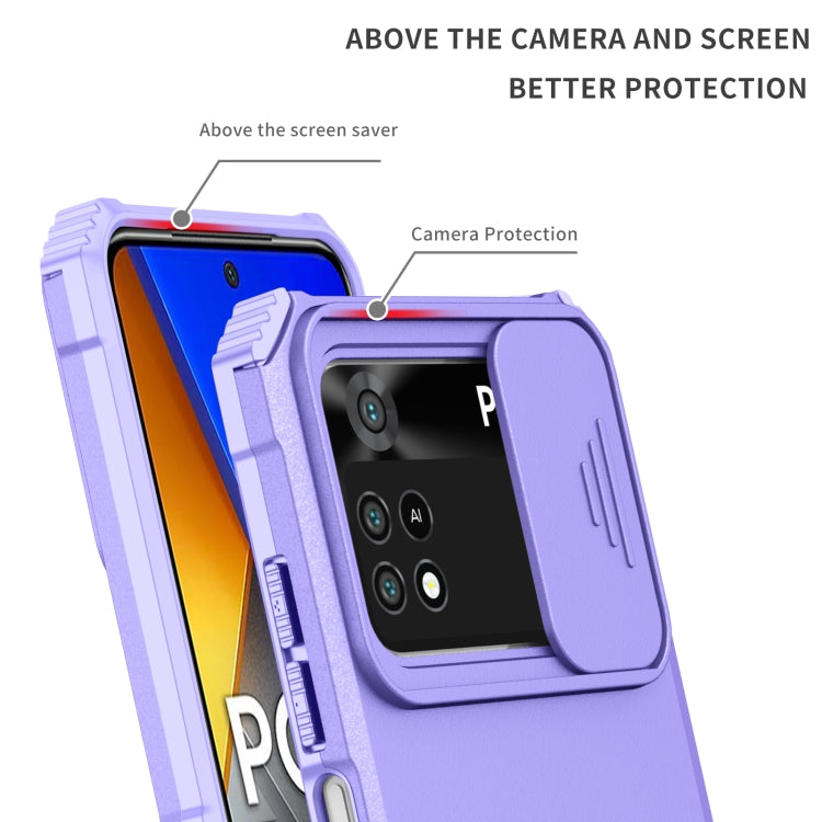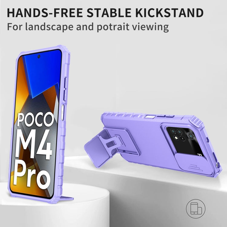 For Xiaomi Poco M4 Pro 4G Stereoscopic Holder Sliding Camshield Phone Case(Purple)