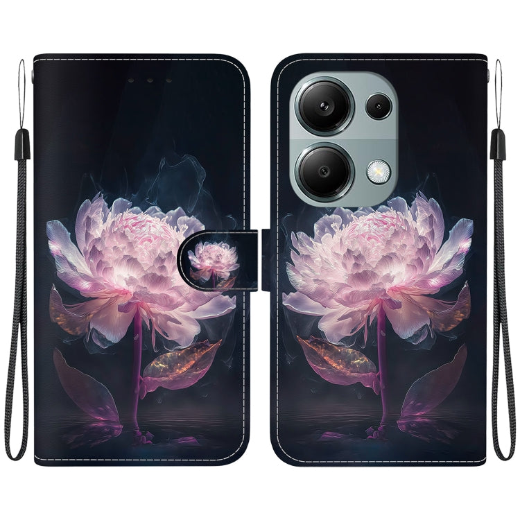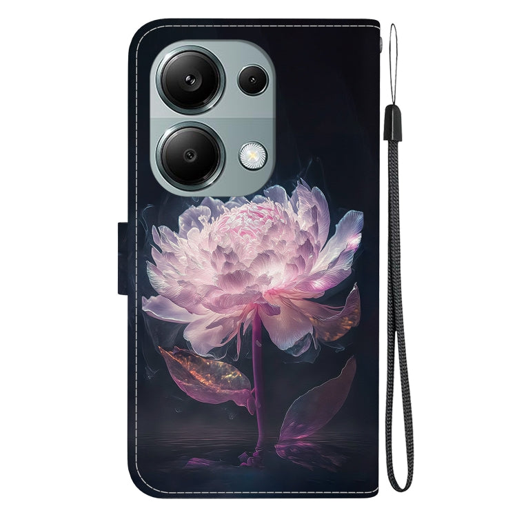 For Xiaomi Poco M6 Pro 4G Crystal Texture Colored Drawing Leather Phone Case(Purple Peony)