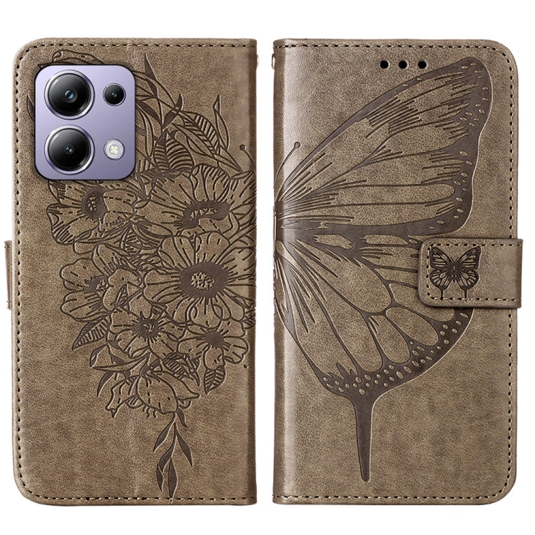 For Xiaomi Poco M6 Pro 4G Embossed Butterfly Leather Phone Case(Grey)