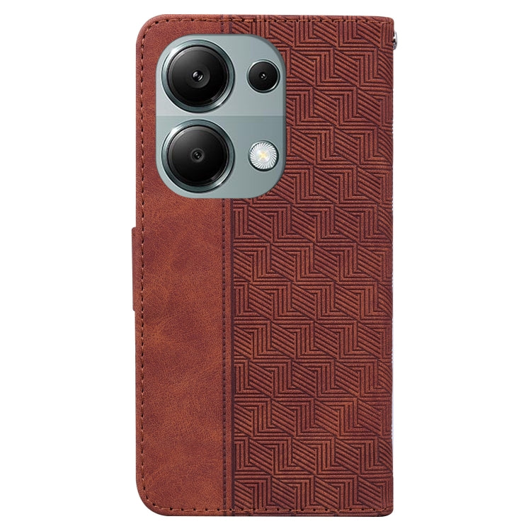 For Xiaomi Poco M6 Pro 4G Geometric Embossed Leather Phone Case(Brown)