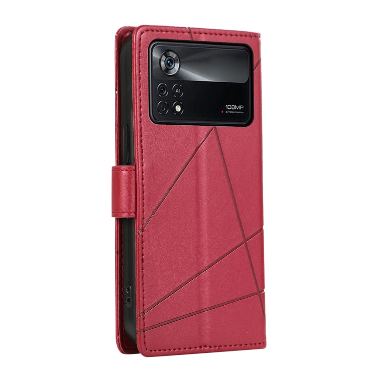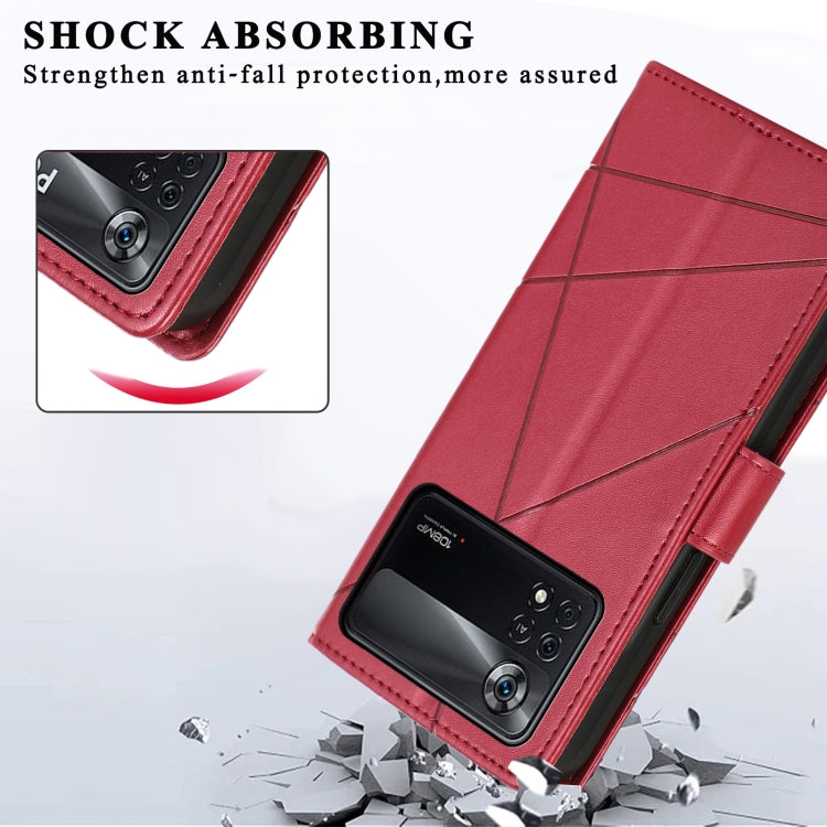For Xiaomi Poco X4 Pro 5G PU Genuine Leather Texture Embossed Line Phone Case(Red)