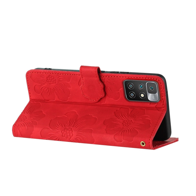 For Xiaomi Redmi 10 2022 Flower Embossing Pattern Leather Phone Case(Red)