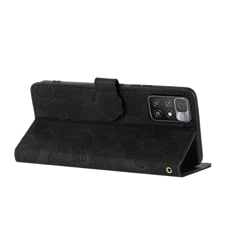 For Xiaomi Redmi 10 Flower Embossing Pattern Leather Phone Case(Black)