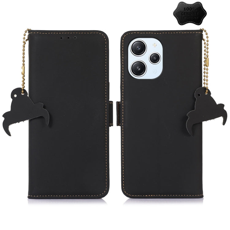 For Xiaomi Redmi 12 Genuine Leather Magnetic RFID Leather Phone Case(Black)