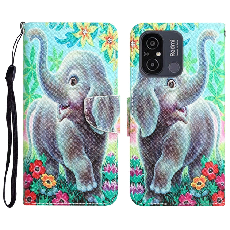 For Xiaomi Redmi 12C Colored Drawing Leather Phone Case(Elephant)