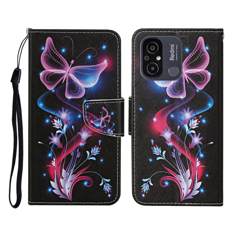 For Xiaomi Redmi 12C Colored Drawing Pattern Flip Leather Phone Case(Fluorescent Butterfly)