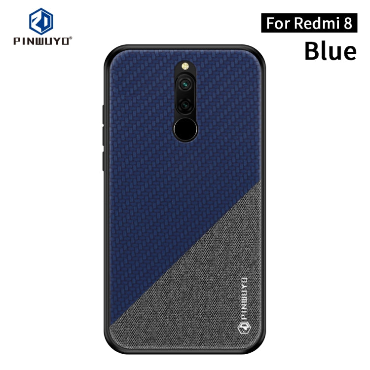 For Xiaomi RedMi 8 PINWUYO Rong Series Shockproof PC + TPU+ Chemical Fiber Cloth Protective Cover(Blue)
