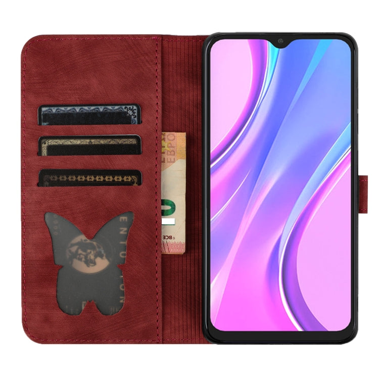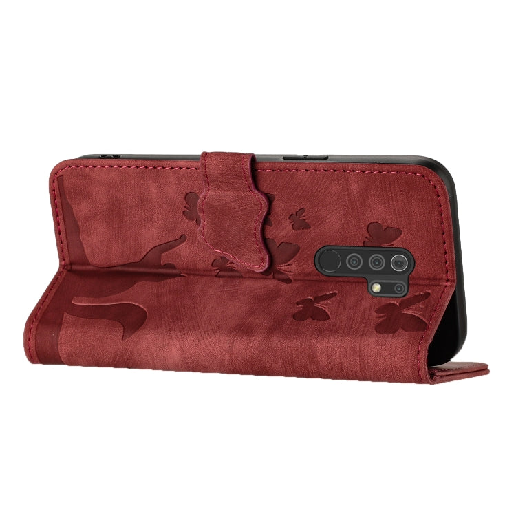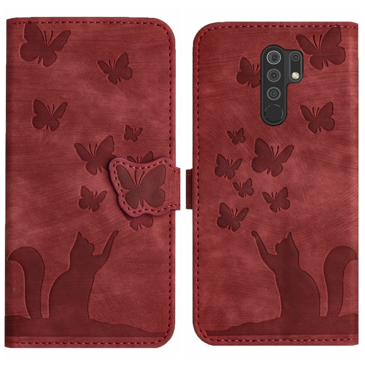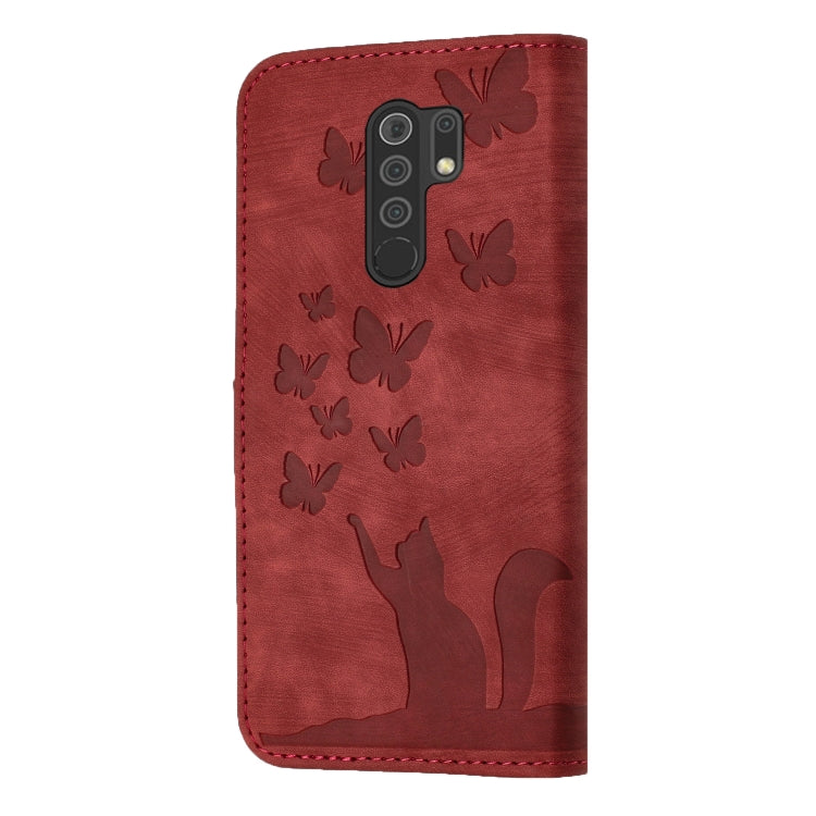For Xiaomi Redmi 9 Butterfly Cat Embossing Flip Leather Phone Case(Red)