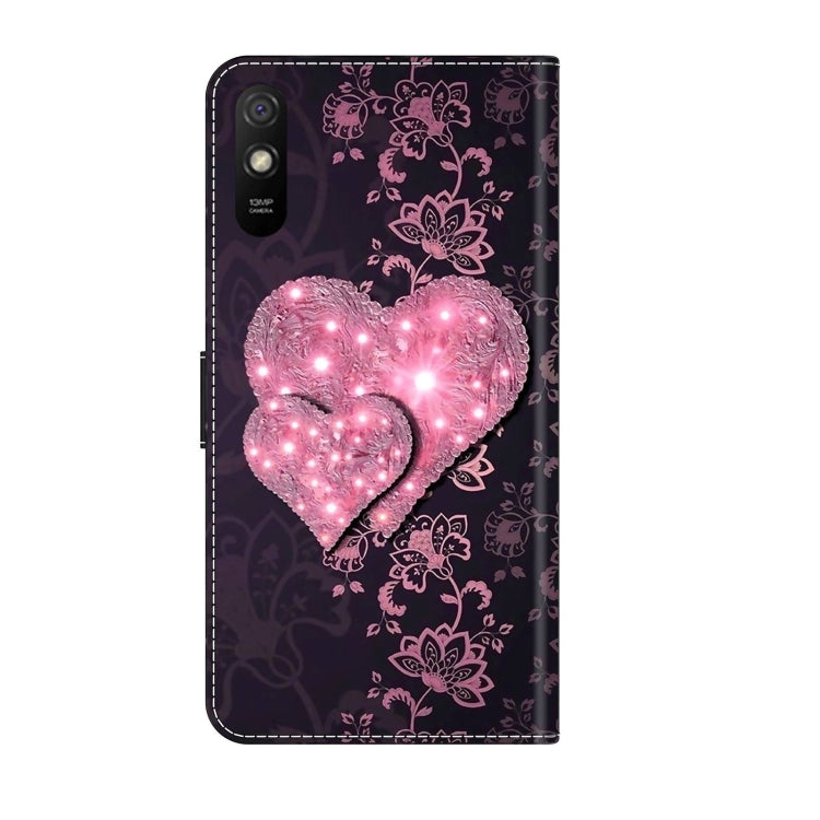 For Xiaomi Redmi 9A Crystal 3D Shockproof Protective Leather Phone Case(Lace Love)