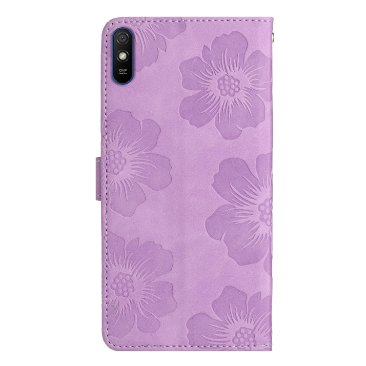For Xiaomi Redmi 9A Flower Embossing Pattern Leather Phone Case(Purple)