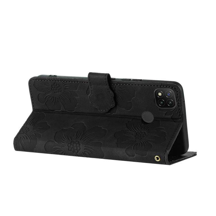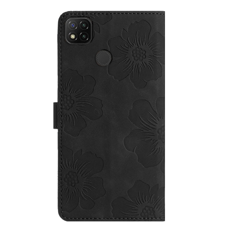 For Xiaomi Redmi 9C Flower Embossing Pattern Leather Phone Case(Black)
