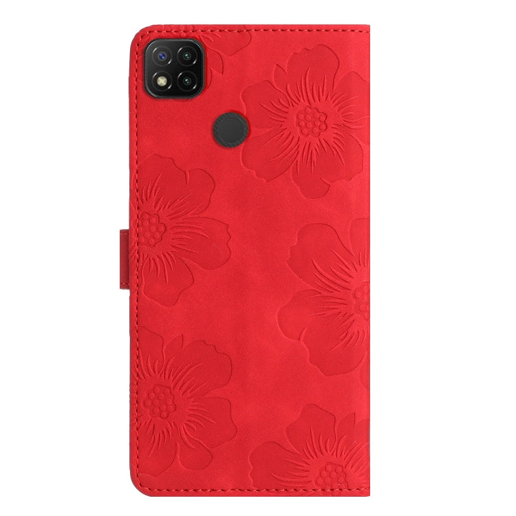 For Xiaomi Redmi 9C Flower Embossing Pattern Leather Phone Case(Red)