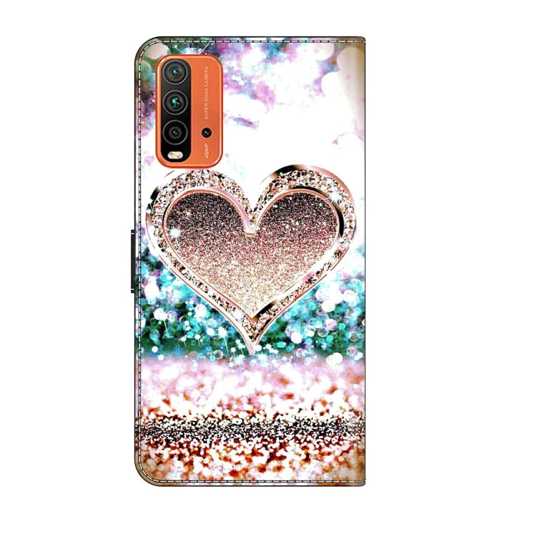 For Xiaomi Redmi 9T Crystal 3D Shockproof Protective Leather Phone Case(Pink Diamond Heart)