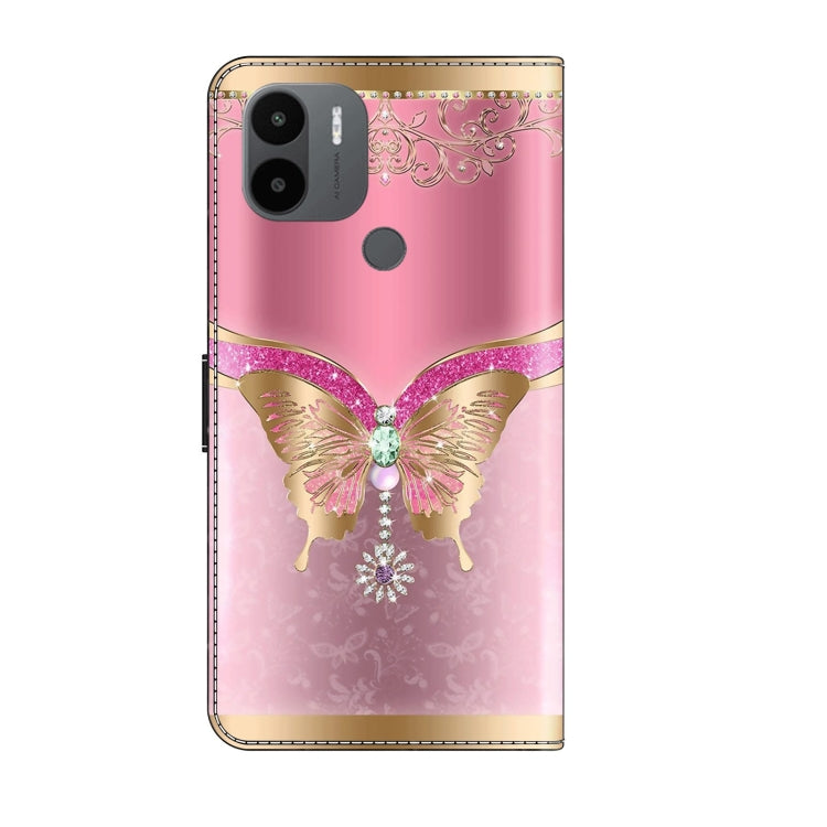 For Xiaomi Redmi A1+ / A2 / A2+ Crystal 3D Shockproof Protective Leather Phone Case(Pink Bottom Butterfly)